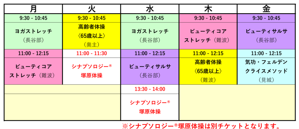 2025年1月31日 / 最終更新日時 : 2025年1月31日 Tsukahara お知らせ カルチャー教室 時間割の変更について(2025年2月より) シナプソロジー®塚原体操の開講により、時間割を変更させていただきます。 コメントを残す コメントをキャンセルメールアドレスが公開されることはありません。 ※ が付いている欄は必須項目ですコメント ※ 名前 ※ メール ※ サイト 次回のコメントで使用するためブラウザーに自分の名前、メールアドレス、サイトを保存する。