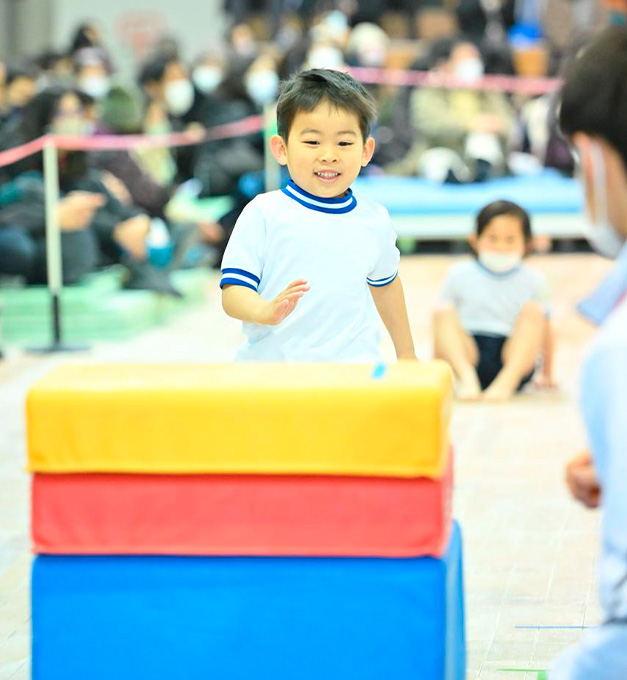 基礎的な体操を通じ、運動大好きな、いつも明るく元気に何事にも一生懸命がんばれる子供の基礎作りを目指します。